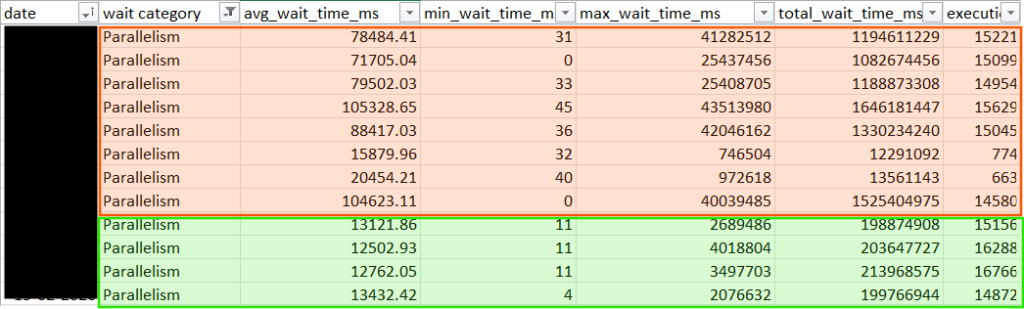 - Wait Time Crash: While the Parallelism category remains a primary wait type, the average duration of these waits plummeted by 84%. Other wait categories also declined significantly, indicating a broader reduction in scheduling and resource contention.